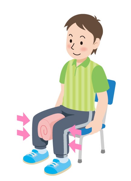膝をくっつけて力を入れて10数えました。それを10回繰り返しました。