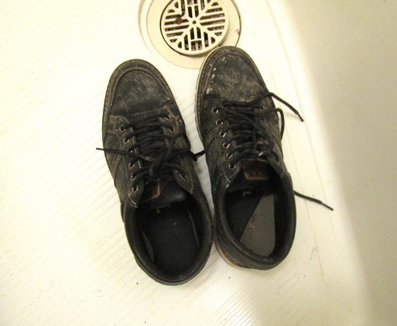 登山当日には、片付けがしんどかった、泥まみれのシューズを、洗いました。