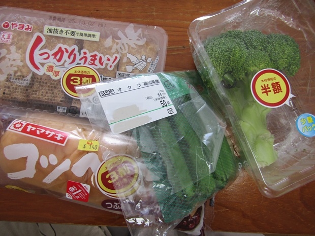 片道2キロ歩いて。見切り品を買ってきた。ぜいたくは禁止。