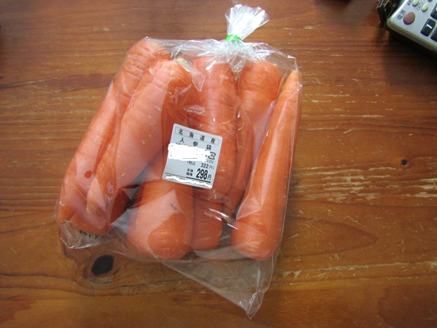 約1キロ半歩いた先にあるスーパーマーケットで人参の安売りをしていました。安い!と思うとすぐ買います。